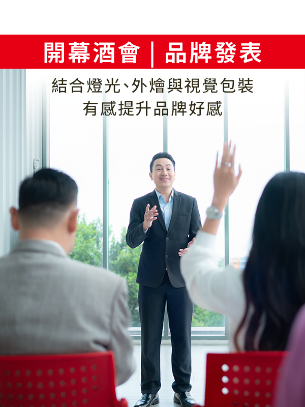 所有你需要的,細節我們都準備好了 燈光音響 活動升級,現場更有感 攝錄影服務 專業紀錄、即時直播 佈置與道具 氣球、花藝、背板、迎賓區 外燴茶點 輕食、調酒、甜點皆可安排 場控接待 報到、主持、引導人力支援 活動顧問 流程設計、硬體配置、協調聯繫 表演支援 歌手、樂團、魔術、舞蹈... 活動物資 紀念品、小卡、名牌設計