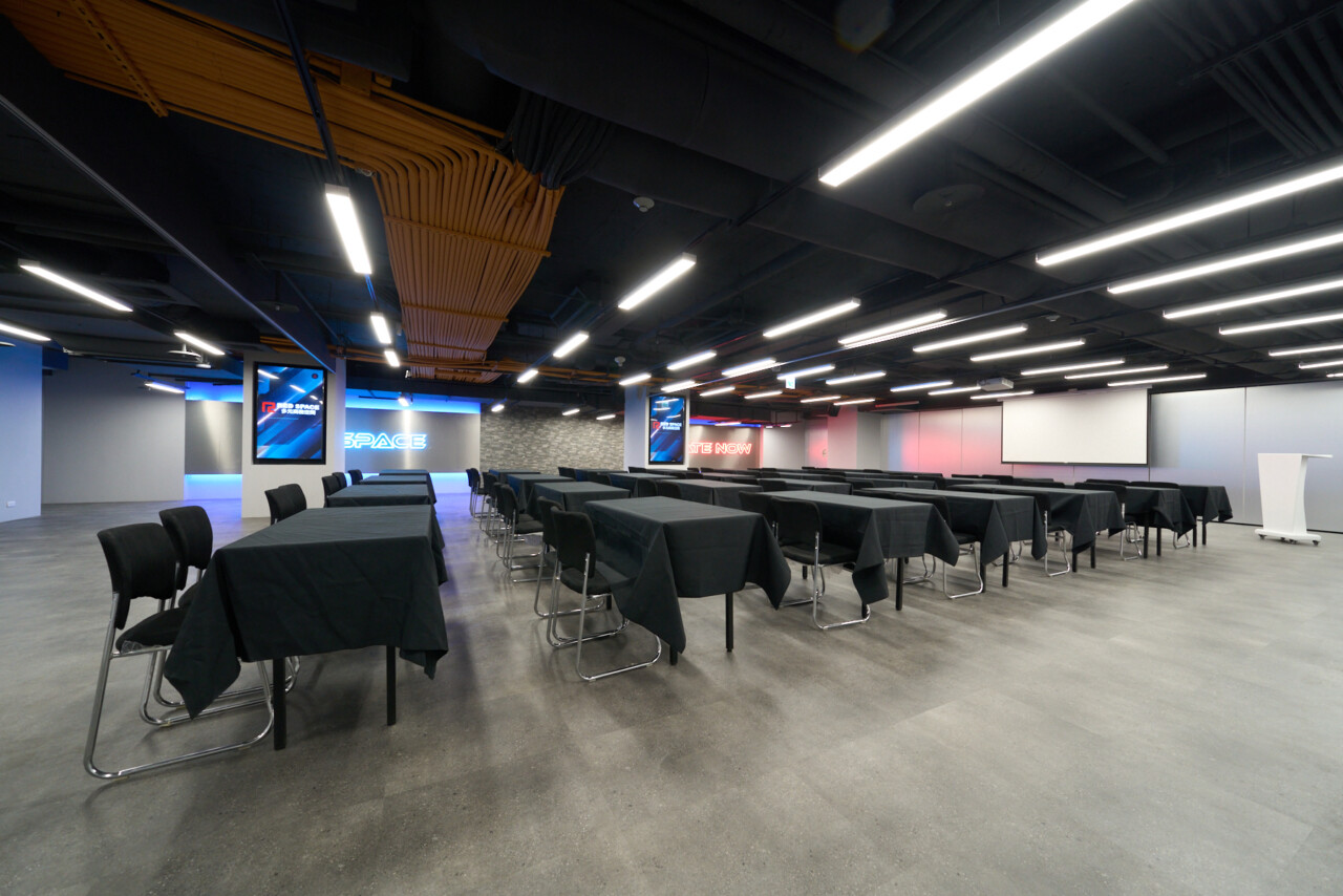 位於捷運南京復興站步行 1 分鐘內,紅點最大空間,最多可容納 234 人(純座位)或 130 人(桌椅型式),適合論壇、發表會、大型表演與記者會使用。空間挑高寬敞、動線流暢,舞台與視聽設備齊備,支援全天候活動與大型器材進出。